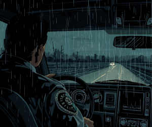 There was no sign of anything or anyone, but you never know what danger lies beyond the light’s reach. Again, it was dark and stormy, making it one of those scenarios where the hairs on the back of your neck and arms immediately leap to attention. But I had to forget the woods for the time being and focus on the immediate danger—the car.